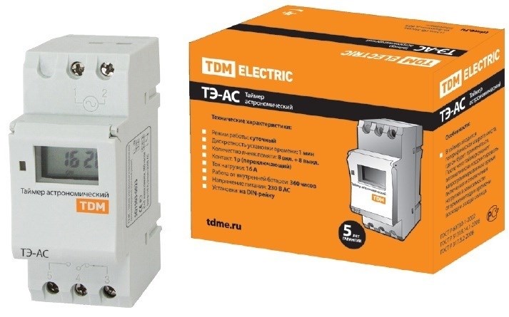Таймер электронный ТЭ-АС-1мин/24ч-8on/off-16А-DIN (астрономический) TDM