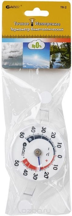 Биметаллический термометр GARIN Точное Измерение TB-2 - механический измеритель температуры в помещении и на улице с диапазоном от -50°С до +50°С и ценой деления 1°С. Оснащен двумя креплениями.