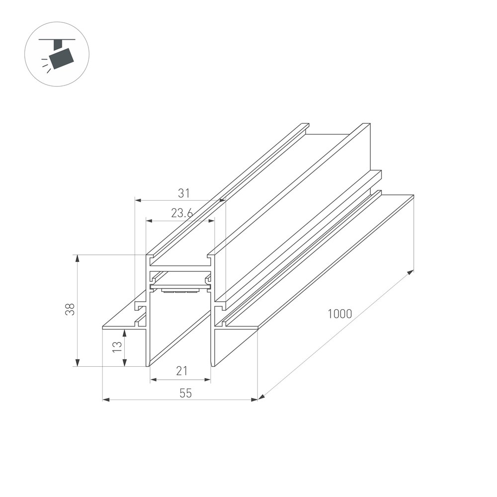Трек встраиваемый MAG-TRACK-2538-FDW-1000 (BK) (Arlight, IP20 Металл, 3 года)