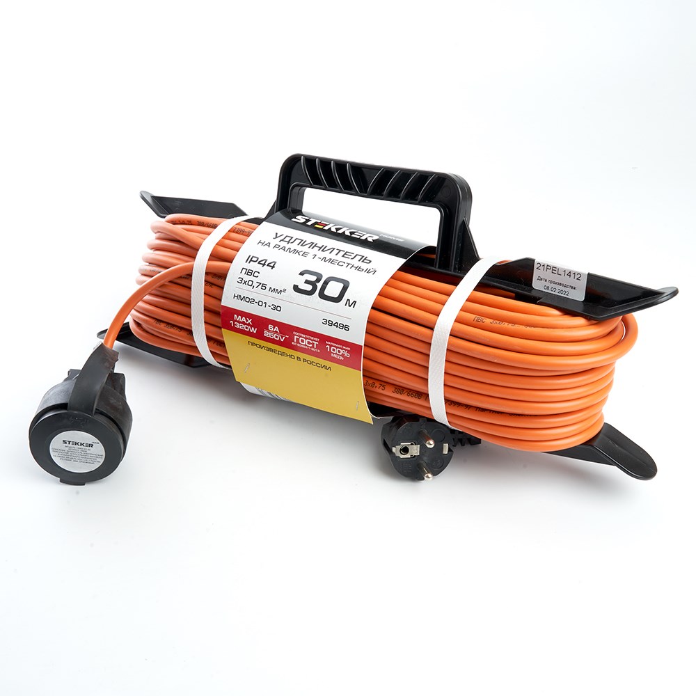 Удлинители STEKKER HM02-01-30, серия Home, цвет оранжевый, длина 30 м, количество розеток 1, сталь, сечение кабеля 0.75 мм2, тип кабеля ПВС, материал кабеля медь, ток 6А, напряжение 220В, максимальная нагрузка 1320Вт, тип вилки - прямая. Диапазон рабочих температур +1..+35°C, степень защиты IP44, класс защиты от поражения эл. током 1, размеры изделия 420*130*100. Гарантия 1 год.