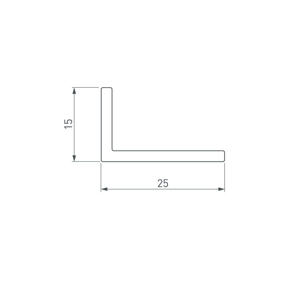 Габаритные размеры уголка составляют 2000 мм в длину, 25 мм в ширину и 15 мм в высоту.