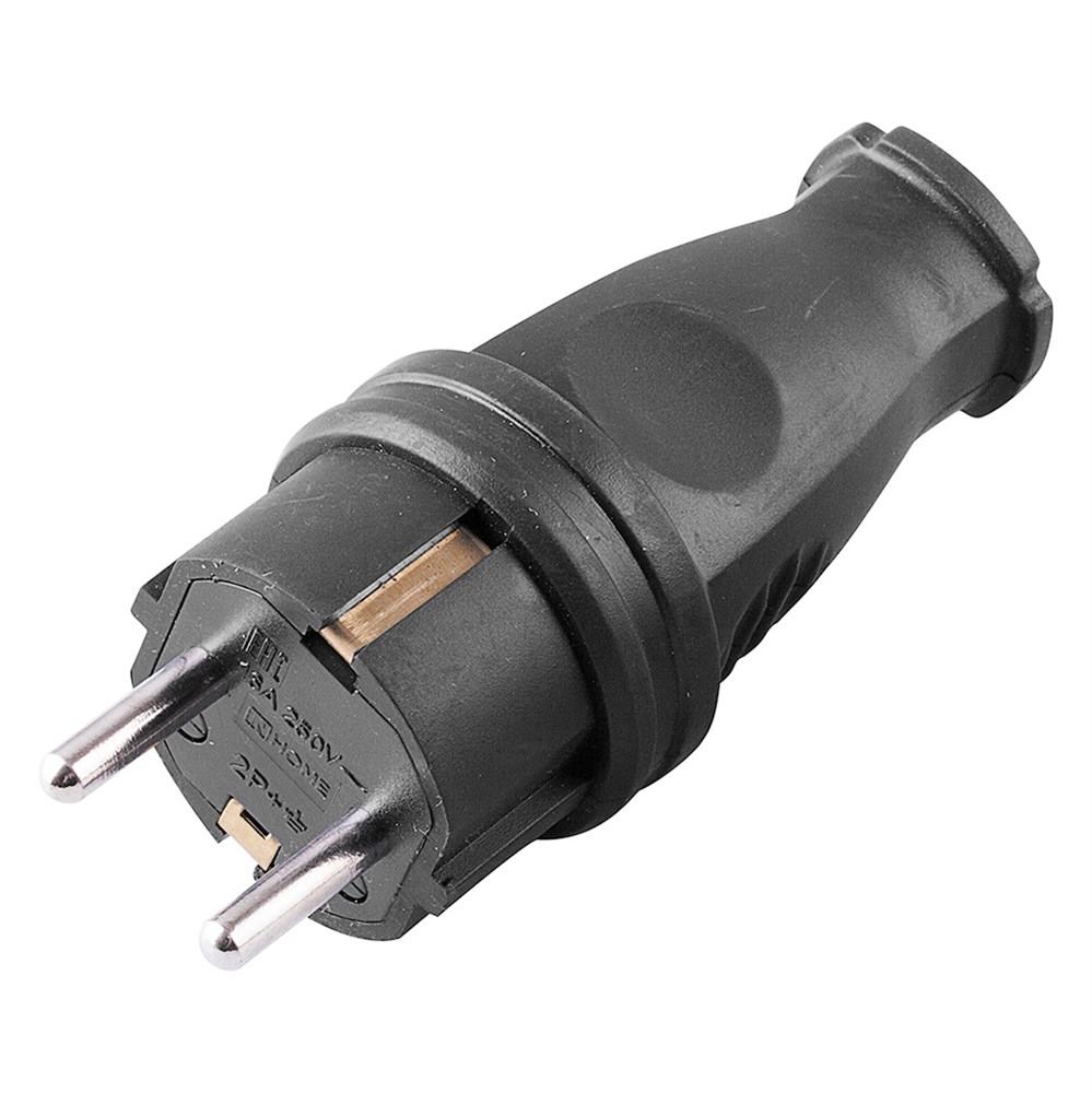Вилка прямая STEKKER RPG16-21-441, с заземлением. Для проводов сечением 1мм2. Материал изделия каучук; цвет черный; размер 102*42*42мм. Номинальное напряжение 250В, Номинальный ток 16А, диапазон рабочих температур 0..+40°C, степень пылевлагозащиты IP44