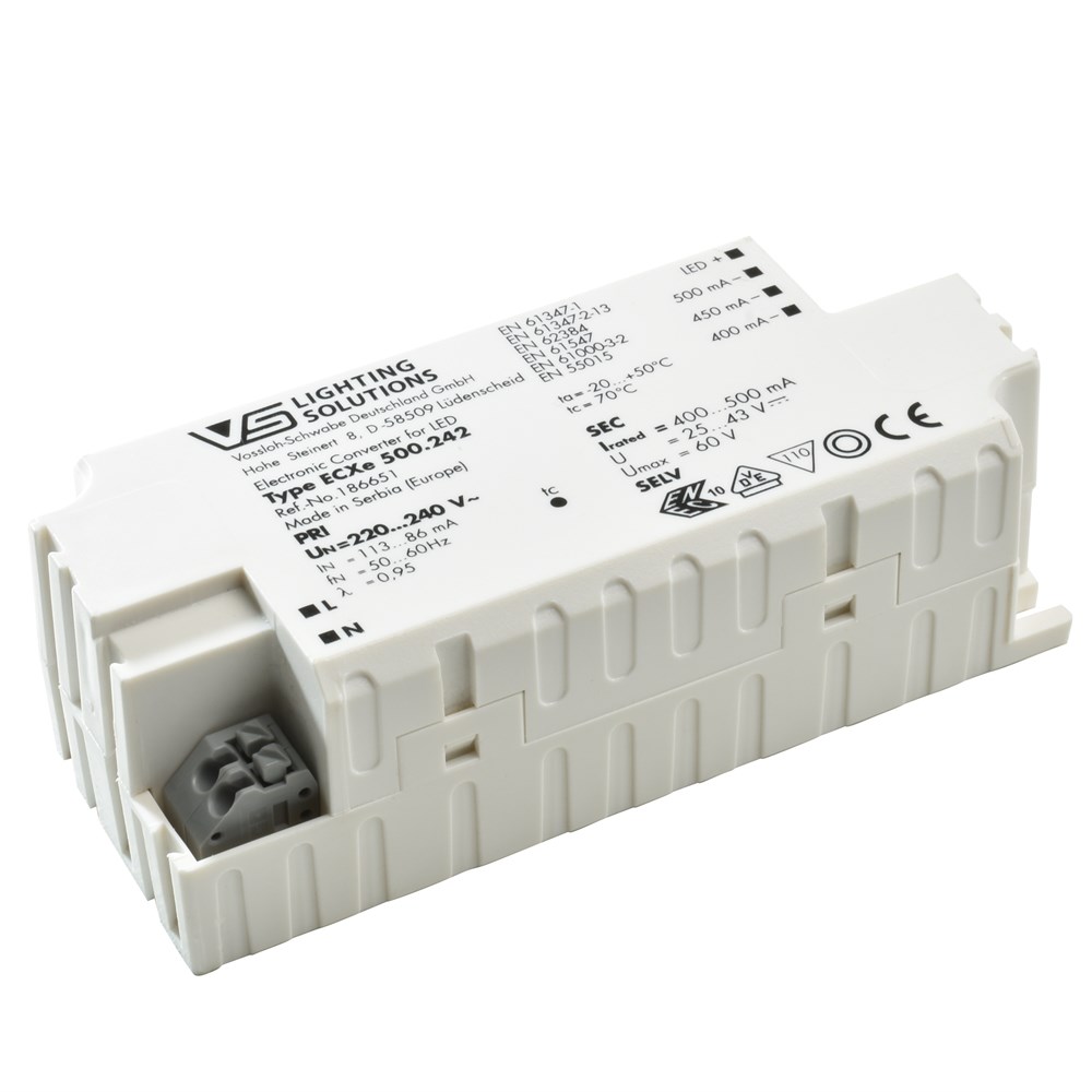 Драйвер для светодиодов VS ECXe 500.242 25-43V 17/19/22W 400/450/500mA 97x43x30 мм - серии K33.1