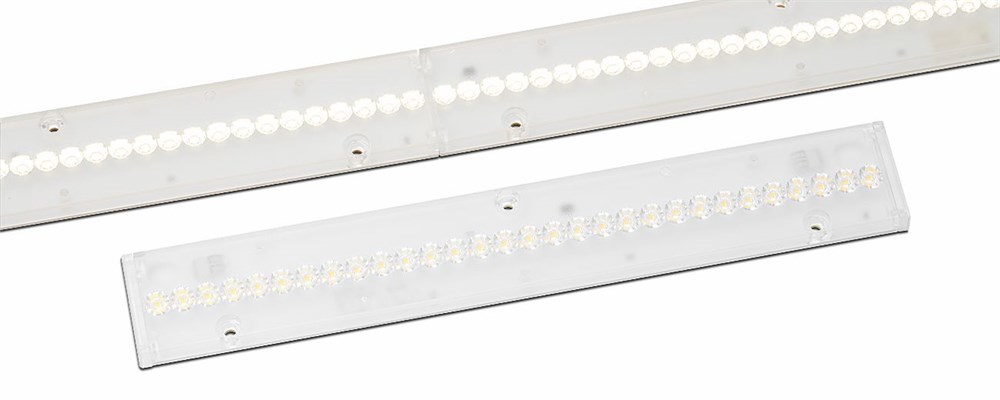 Встраиваемые осветительные модули на печатной плате длиной 560 мм. Безвинтовой контактный зажим на плате. Алюминиевая плата для лучшего теплоотвода. Модули оптимальны использовани в светильниках T5/T8.