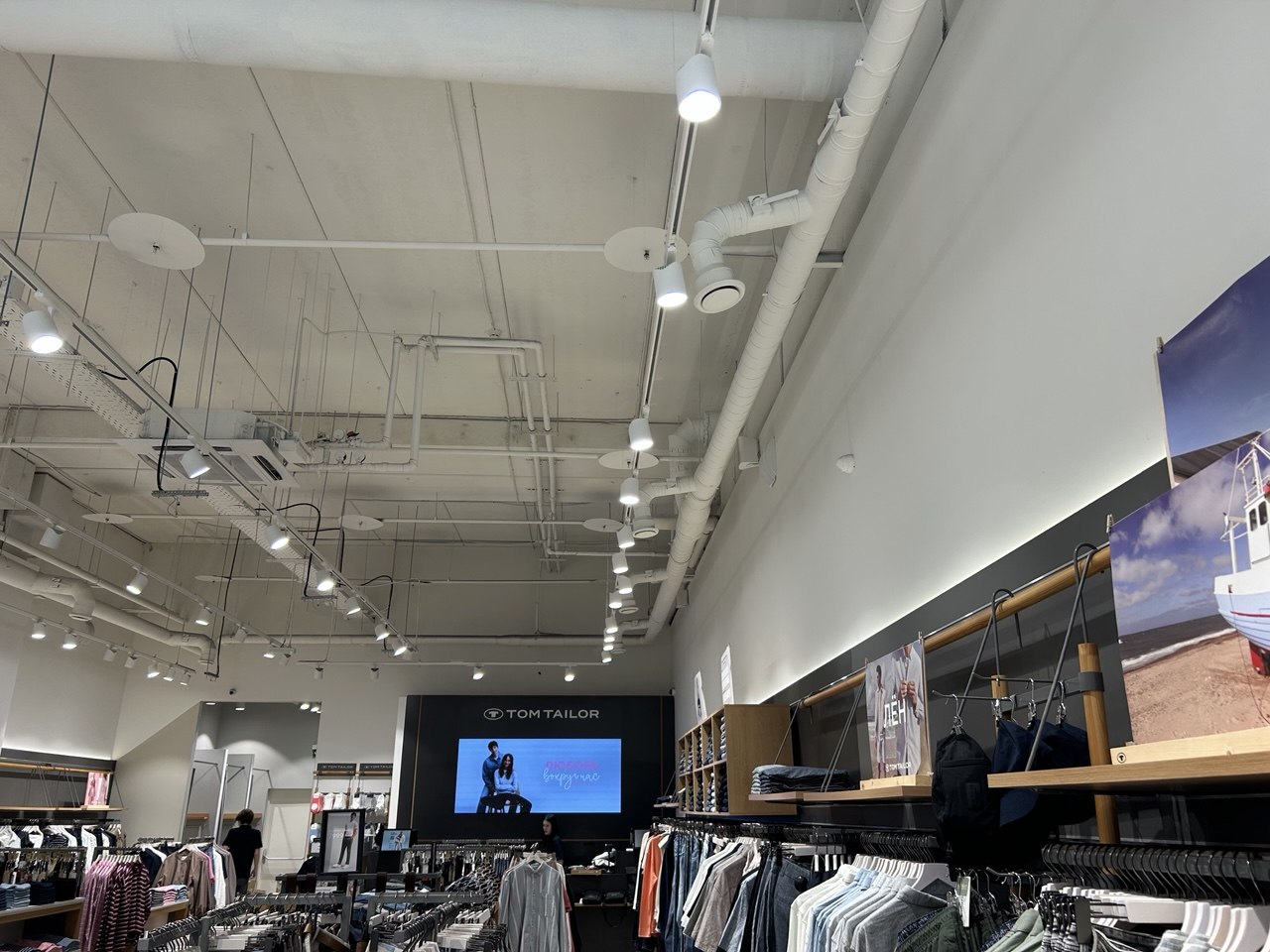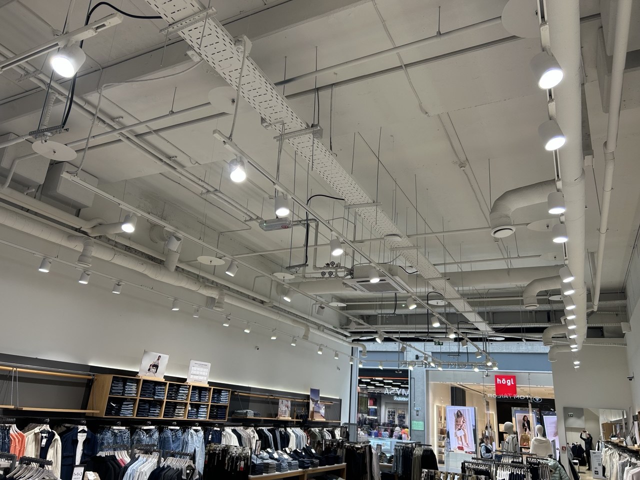 В данном проекте была использована трёхфазная трековая система, совместно со светильниками линии EDIS с высоким индексом цветопередачи CRI 90+, благодаря чему все цвета на витрине выглядят естественно и натурально.